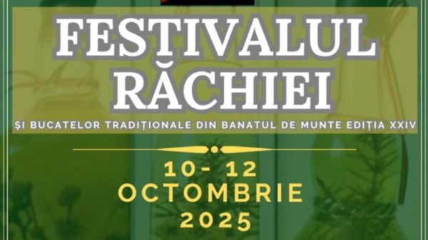 Între 10 și 12 octombrie 2025, Băile Herculane devine capitala tradițiilor bănățene, găzduind Festivalul Răchiei și al Bucatelor Tradiționale din Banatul de Munte, ediția...