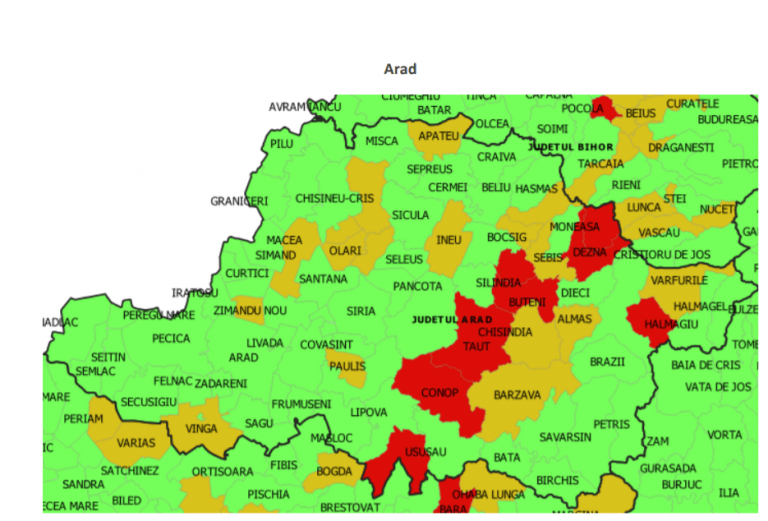 8 localități din Arad sunt în zona roșie. Este vorba despre comunele Bârsa, Buteni, Conop, Dezna, Moneasa, Pleșcuța, Șiștarovăț și Tauț, care au peste 3 cazuri de COVID-19 la mia de locuitori în ultimele 14 zile. Prin urmare, şcoala se închide de tot, iar orele se vor face online.