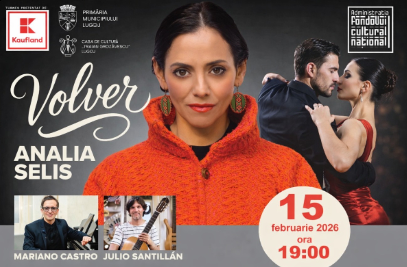 Lugojenii sunt invitați duminică, 15 februarie 2026, de la ora 19:00, la un eveniment muzical special, găzduit de Teatrul Municipal „Traian Grozăvescu” din Lugoj. Artista Analia Selis va urca pe scenă în cadrul Turneului Național „Volver”, un proiect artistic cu profunde valențe emoționale.