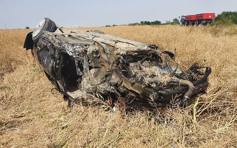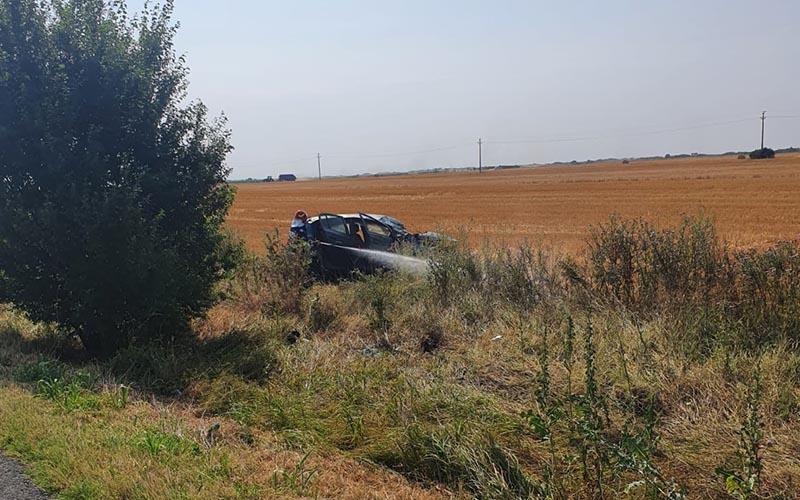 În urma impactului, un autoturism s-a răsturnat în afara părții carosabile, conducătorul său, un bărbat în vârstă de 55 ani, suferind multiple traumatisme.