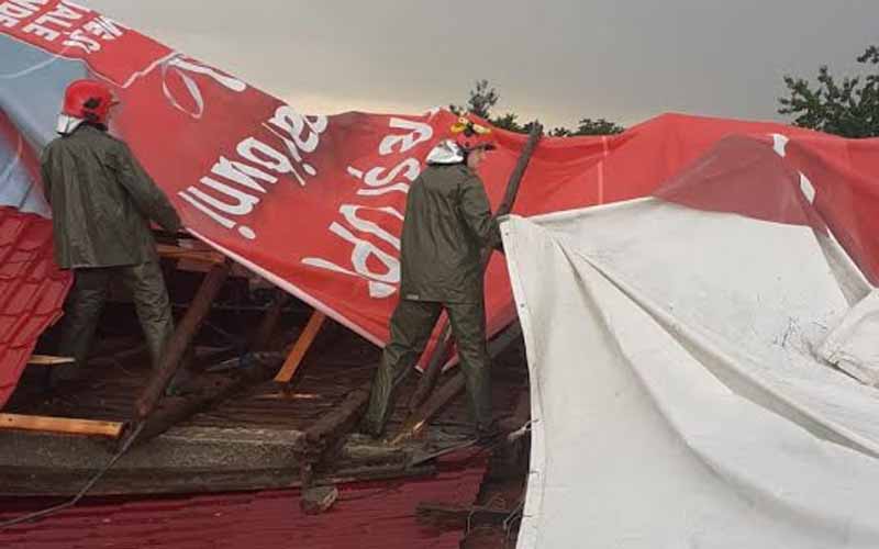 În localitatea Racovița, acoperișurile a patru locuințe și un autoturism au fost afectate de vântul puternic.