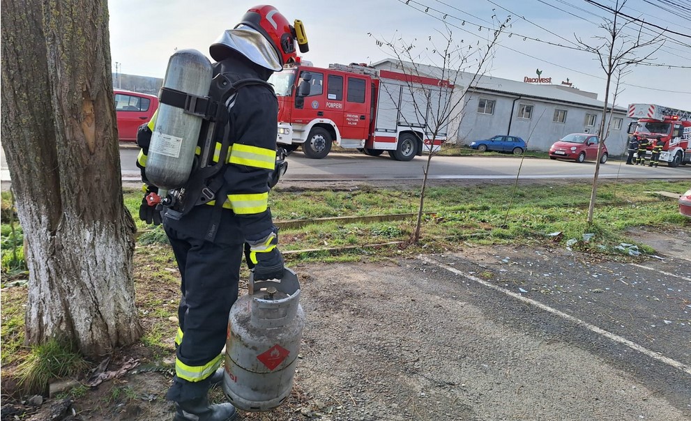 În sprijin intervin pompierii voluntari ai comunei Giarmata. Facem precizarea ca explozia nu a fost urmată de incendiu.