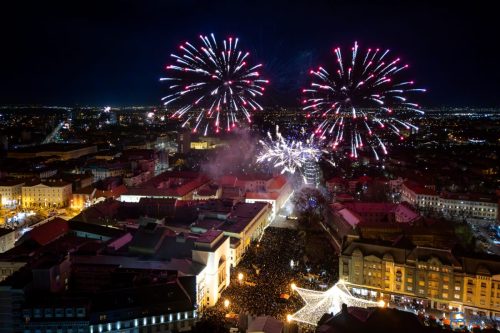 Piața Victoriei din Timișoara a devenit epicentrul distracției în noaptea de Revelion. În ciuda temperaturilor scăzute, publicul a umplut centrul orașului, bucurându-se de muzică, lumini și un show de excepție. Mii de timișoreni și turiști au ieșit din case pentru a sărbători trecerea dintre ani într-o atmosferă electrizantă, marcată de concerte live și focuri de artificii.