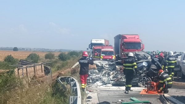 Evenimentul rutier a avut loc in apropierea localitatii timisene Topolovatu Mare. Trei autoturisme, o camioneta si un tir s-au izbit pe soseaua de mare...