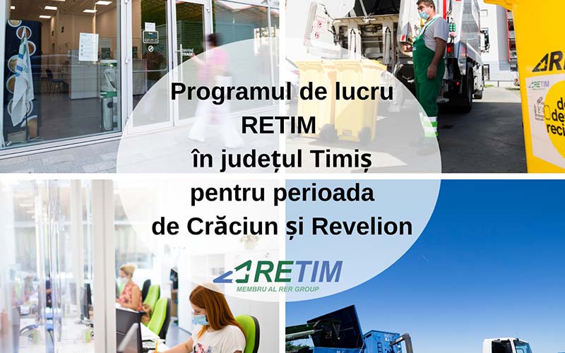 Compania RETIM informează clienţii şi colaboratorii săi din județul Timiș asupra programului de lucru valabil în perioada Sărbătorilor de Iarnă. COLECTAREA DE DEŞEURI Activitatea...