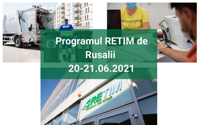 Compania RETIM informează clienţii şi colaboratorii săi din județul Timiș asupra programului de lucru valabil în zilele de Rusalii. COLECTAREA DE DEŞEURI Activitatea de...
