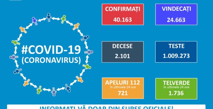 Până astăzi, 24 iulie, pe teritoriul României, au fost confirmate 42.394 de cazuri de persoane infectate cu noul coronavirus (COVID – 19). 25.349 de...