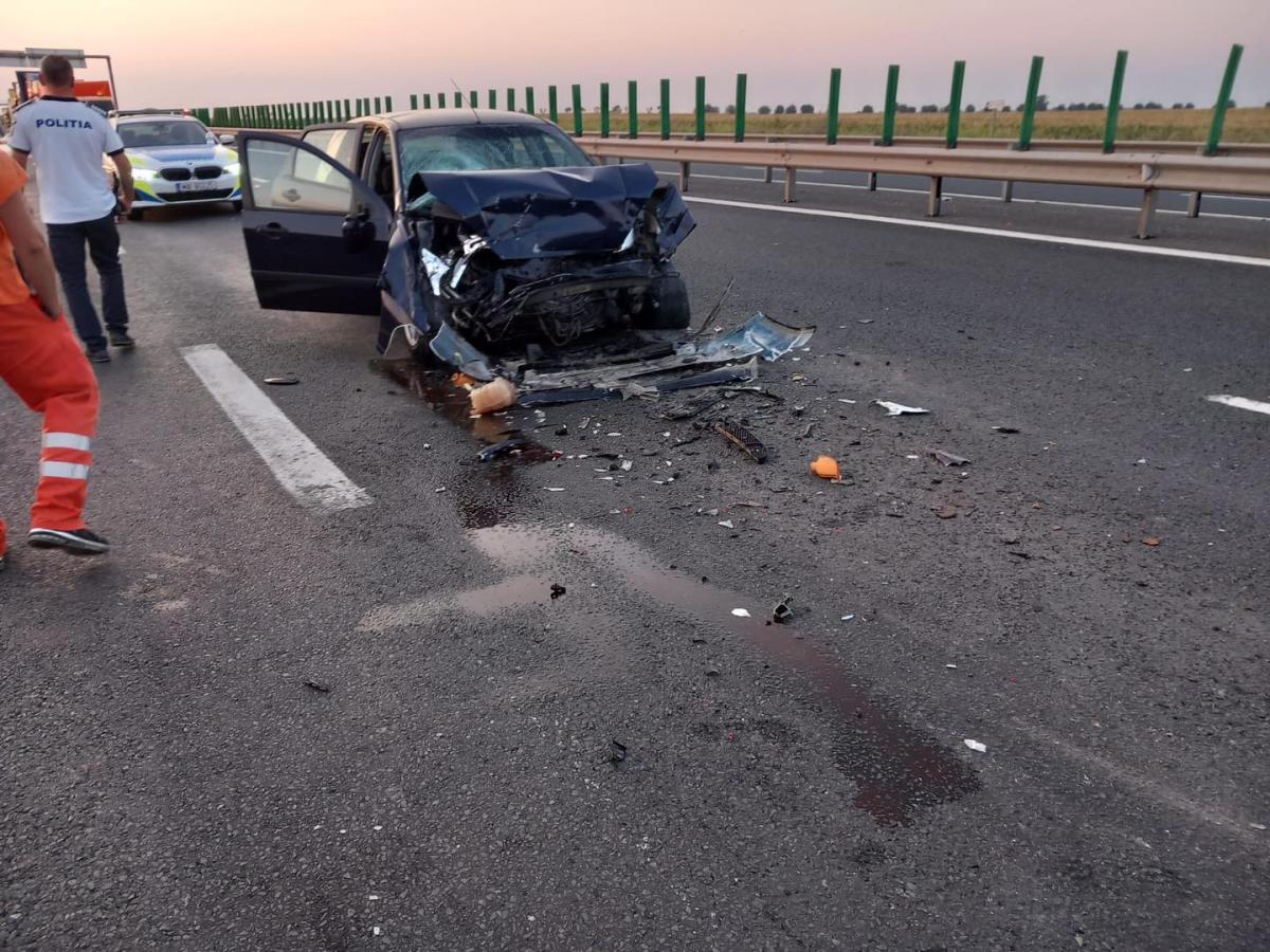 Potrivit DRDP Timișoara, primul accident s-a produs la kilometrul 514+800, în apropiere de localitatea Orțișoara, pe sensul de mers dinspre Arad spre Timișoara. În acest incident, un camion a acroșat parapetul median, iar circulația se desfășoară acum doar pe banda 1 și pe banda de urgență.